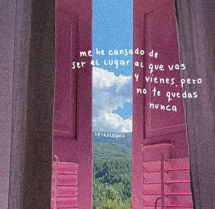 usalinas Amor, Reflexión, Tristeza9 monthsme he cansado de ser el lugar al que vas y vienes. pero no te quedas nunca0 Reacciones